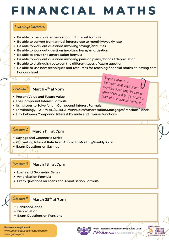 LC26-25SP Financial Maths Course for LC Teachers (series of 4 sessions)