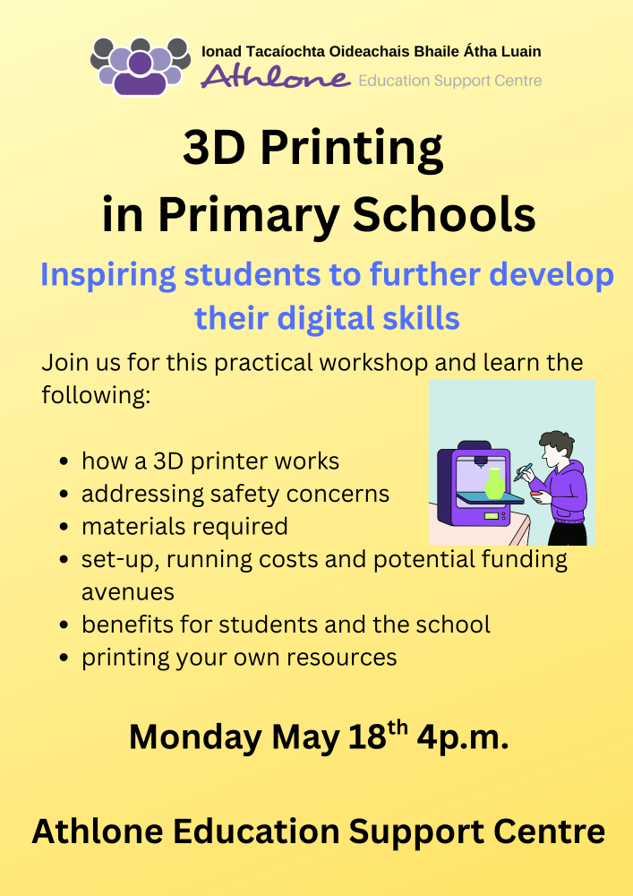 Join us on the Monday 18th May, at 4pm in the Athlone Education Centre.